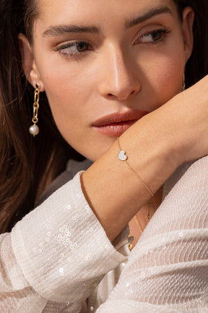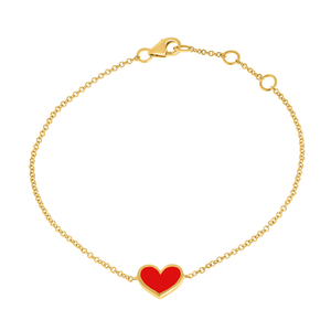 צמיד ‘לב עדן’ עשוי מזהב 14 קראט בעבודת יד, עם אלמנט לב זהב עם אמייל בעבודת יד . זה שילוב קסום של עדינות ויוקרה, שמוסיף נגיעה של רוך ואהבה לכל רגע.