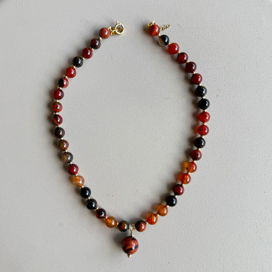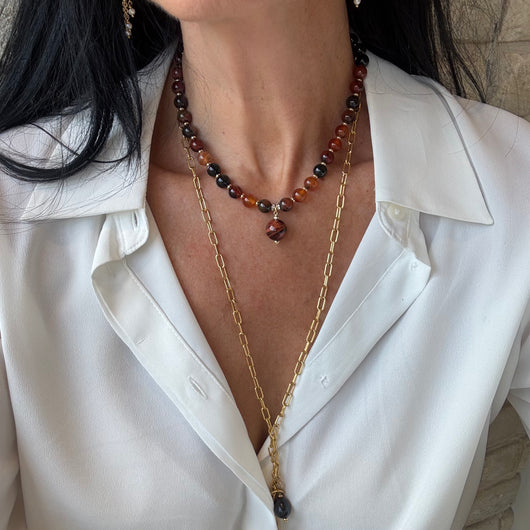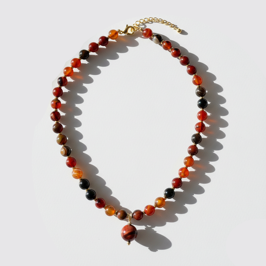 במרכזה תליון מאבן Red Tiger Eye שמוסיפה נגיעה של עוצמה ורכות בעת ובעונה אחת,
